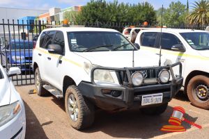 WHITE, 4 X 4, AUTO, P/S, A/C, DIESEL, REG# 1INJ094 LIC: 13.12.25, ODO# 356,190 KMS SHOWING ON CLOCK, VIN# MMOUP0YF100108500, ENG# P5AT1083337, ORICOM TWO WAY, SOLAR PANEL, SOLAR CHARGE CONTROLLER, TOWBALL, ENCLOSED CANOPY, SPARE TYRE, SIDE STEPS, BULLBAR & SPOTLIGHTS, 2 X ROOF RACKS, REVERSE CAMERA, SNORKEL, * KEY# 49* (WP#4150)