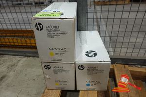 3 X HP LASERJET CARTRIDGES (2 X CE262AC YELLOW, 1 X CE261AC CYAN)
