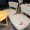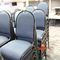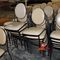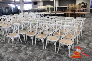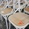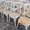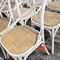 26 X CAFE CHAIRS. WHITE METAL FRAMES WITH RATTAN SEATS. POOR/AVERAGE CONDITION. NORMAL WEAR AND TEAR. SOME MARKS/SCRATCHES/SUN DAMAGE. SOME CORROSION ON METAL FRAMES. INSPECTION RECOMMENDED