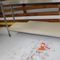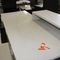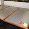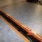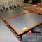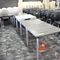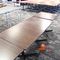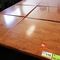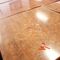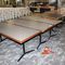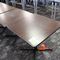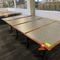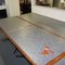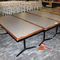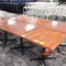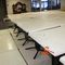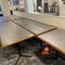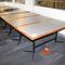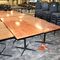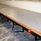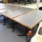 5 X DINING TABLES. TIMBER TOP WITH LEATHER LOOK INSERT AND METAL LEGS. APPROX 2350 X 800MM. NORMAL WEAR AND TEAR. SOME MARKS/SCRATCHES