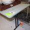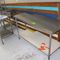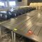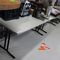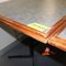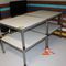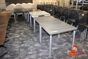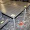 4 X DINING TABLES. TIMBER TOP WITH LEATHER LOOK INSERT AND METAL LEGS. APPROX 1600 X 800MM. NORMAL WEAR AND TEAR. SOME MARKS/SCRATCHES
