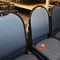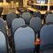 48 X HIGH BACK DINING CHAIRS. PADDED FABRIC SEATS (BLUE) AND BACKREST WITH BLACK METAL FRAMES. STACKABLE. NORMAL WEAR AND TEAR. SOME FABRIC SUN DAMAGED