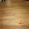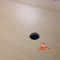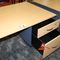 OFFICE DESK WITH DRAWERS. TIMBER GRAIN LOOK. APPROX 1800 X 900MM. SOME MINOR DAMAGE ON BOTTOM OF BASE AND EDGING, ROUND CABLE HOLE IN CENTRE OF DESK. NORMAL WEAR AND TEAR