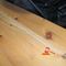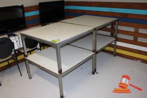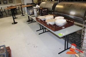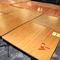 2 X TIMBER TRESTLE TABLES WITH FOLD UP LEGS. APPROX 1600 X 750MM. NORMAL WEAR AND TEAR. SOME MARKS/SCRATCHES