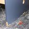 26 X HIGH BACK DINING CHAIRS. PADDED FABRIC SEATS (BLUE) AND BACKREST WITH BLACK METAL FRAMES. STACKABLE. NORMAL WEAR AND TEAR