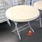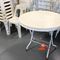 11 X OUTDOOR TABLES. WHITE. DIAM APPROX 900MM. FOLDABLE. POOR/AVERAGE CONDITION. SOME MARKS/SCRATCHES/CORROSION/SUN DAMAGE. INSPECTION RECOMMENDED
