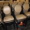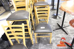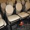 20 X CASUAL DINING/CAFE CHAIRS. BLACK VINYL PADDED SEATS WITH METAL FRAME. MINOR WEAR AND TEAR