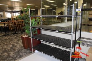 4 TIER STORAGE UNIT. GALVANISED FRAME WITH PLASTIC SHELVING. APPROX 1650 X 600 X H1800MM