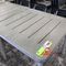 8 X NARDI OUTDOOR SQUARE PLASTIC CAFE TABLES. 900 X 900MM. DARK GREY. TIMBER SLAT LOOK. REMOVABLE LEGS FOR EASY TRANSPORT/STORAGE. NORMAL WEAR AND TEAR