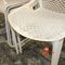 4 X METAL OUTDOOR CHAIRS (LIGHT GREY), 2 X PLASTIC (MESH) OUTDOOR SIESTA CHAIRS. WHITE (NEEDS GOOD CLEAN), 2 X DARK GREY PLASTIC BAR STOOLS