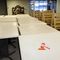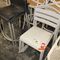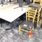 16 X SQUARE DINING/CAFE TABLES. 800 X 800MM. TIMBER GRAIN LOOK TOP WITH METAL BASE. NORMAL WEAR AND TEAR. SOME MINOR MARKS/SCRATCHES
