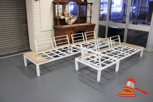 2 X DOUBLE OUTDOOR LOUNGE FRAMES (METAL). NO CUSHIONS, 1 X DOUBLE OUTDOOR LOUNGE FRAMES (METAL) WITH SINGLE SEAT EXTENSION