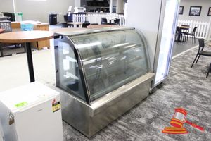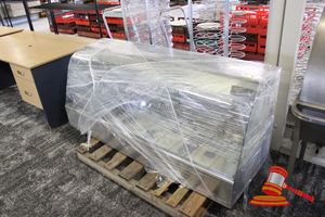 CURVED WARM 3 TIER DISPLAY CABINET. MOBILE. 240V. APPROX 1500 X 750 X H1200MM