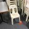 APPROX 20 X OUTDOOR CHAIRS. CREAM. STACKABLE. POOR/AVERAGE CONDITION. SOME MARKS/SCRATCHES/SUN DAMAGE. INSPECTION RECOMMENDED