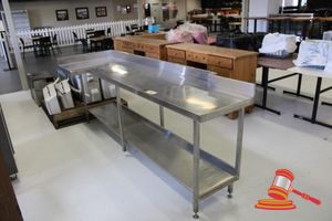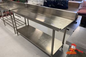 SIMPLY STAINLESS DISHWASHER OUTLET BENCH WITH SPLASH BACK AND UNDER SHELF, APPROX 1660mm x 600mm x H900mm