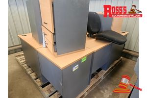 2X OFFICE CORNER DESK APPROX 1500 X 1500 MM , 2X CABINETS, 2X CHAIRS