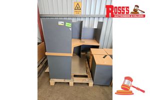 4 X OFFICE CORNER DESK APPROX 1500 X 1500 MM , 4X CABINETS, 4X CHAIRS